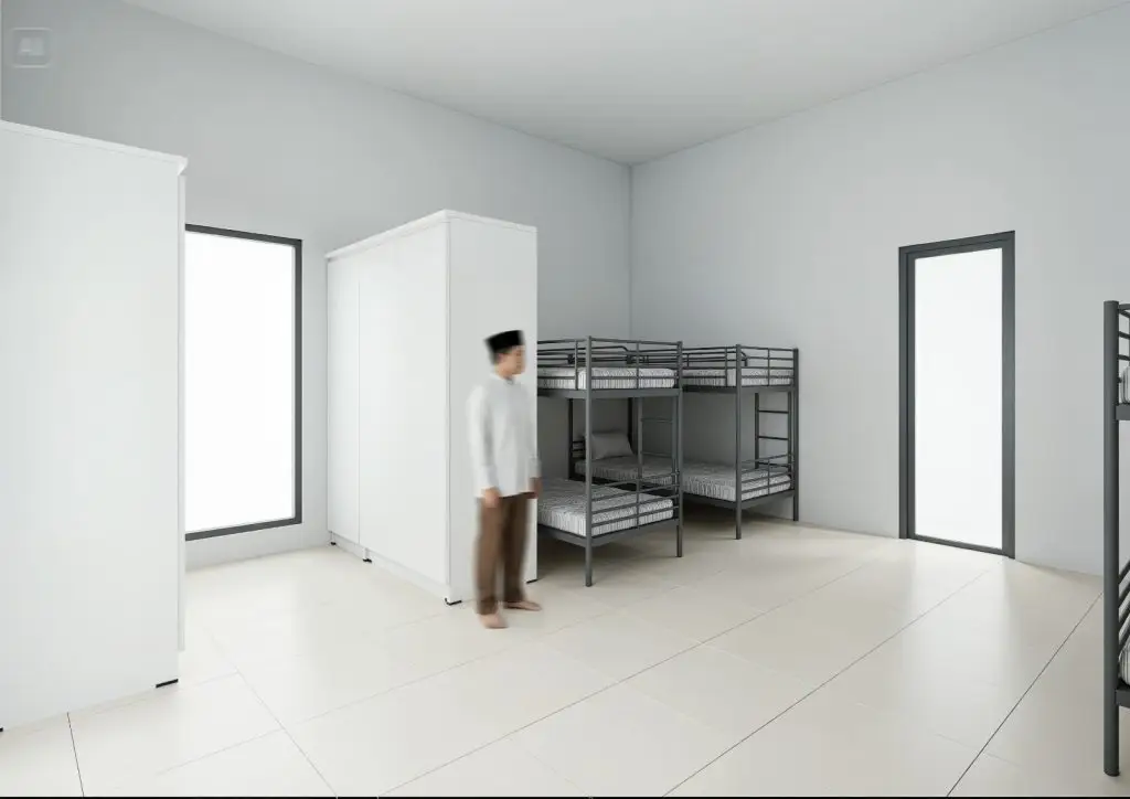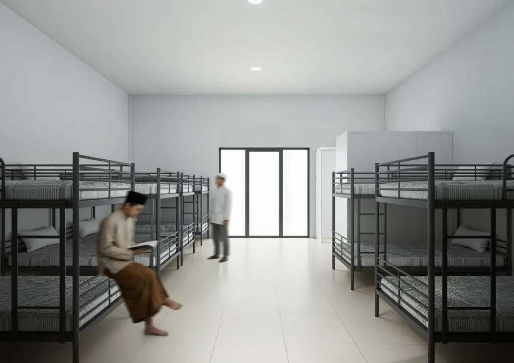 Setiap kamar santri dilengkapi dengan pendingin udara (AC), kamar mandi dan lemari penyimpanan pribadi, dengan kapasitas 12 santri per kamar untuk mendukung kenyamanan dan ketertiban lingkungan asrama.
